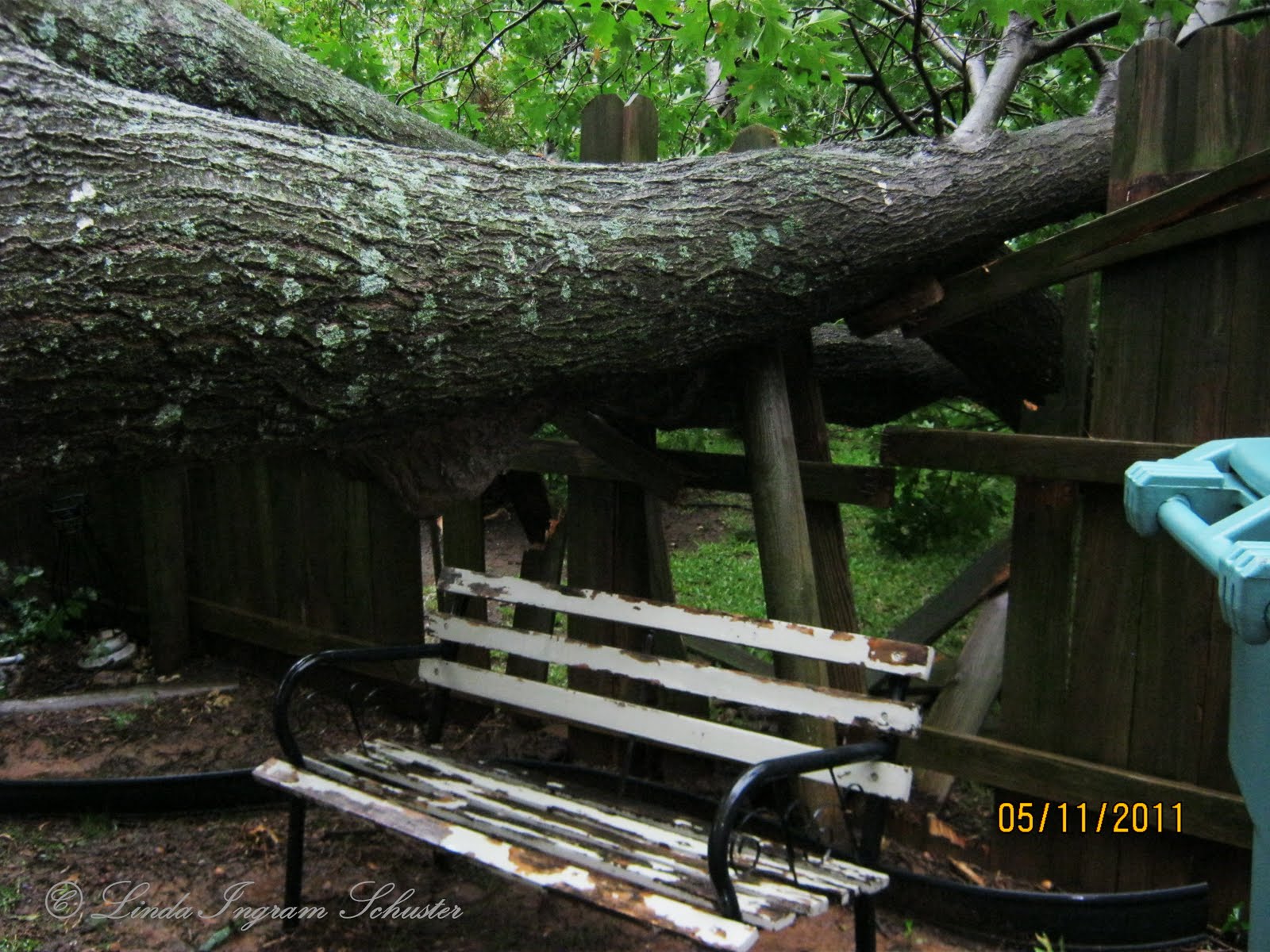 Sorry I couldn't make the meeting... ;o( I guess Mother Nature is not very happy right now... This took a while to fix... thank goodness for my sweetheart of a husband. But.... all is fixed... the tree is gone, the fence is fixed and our next move is to move... literally... since our house is finally finished, papers signed... We will be putting shelf paper in TODAY!!! ;o)